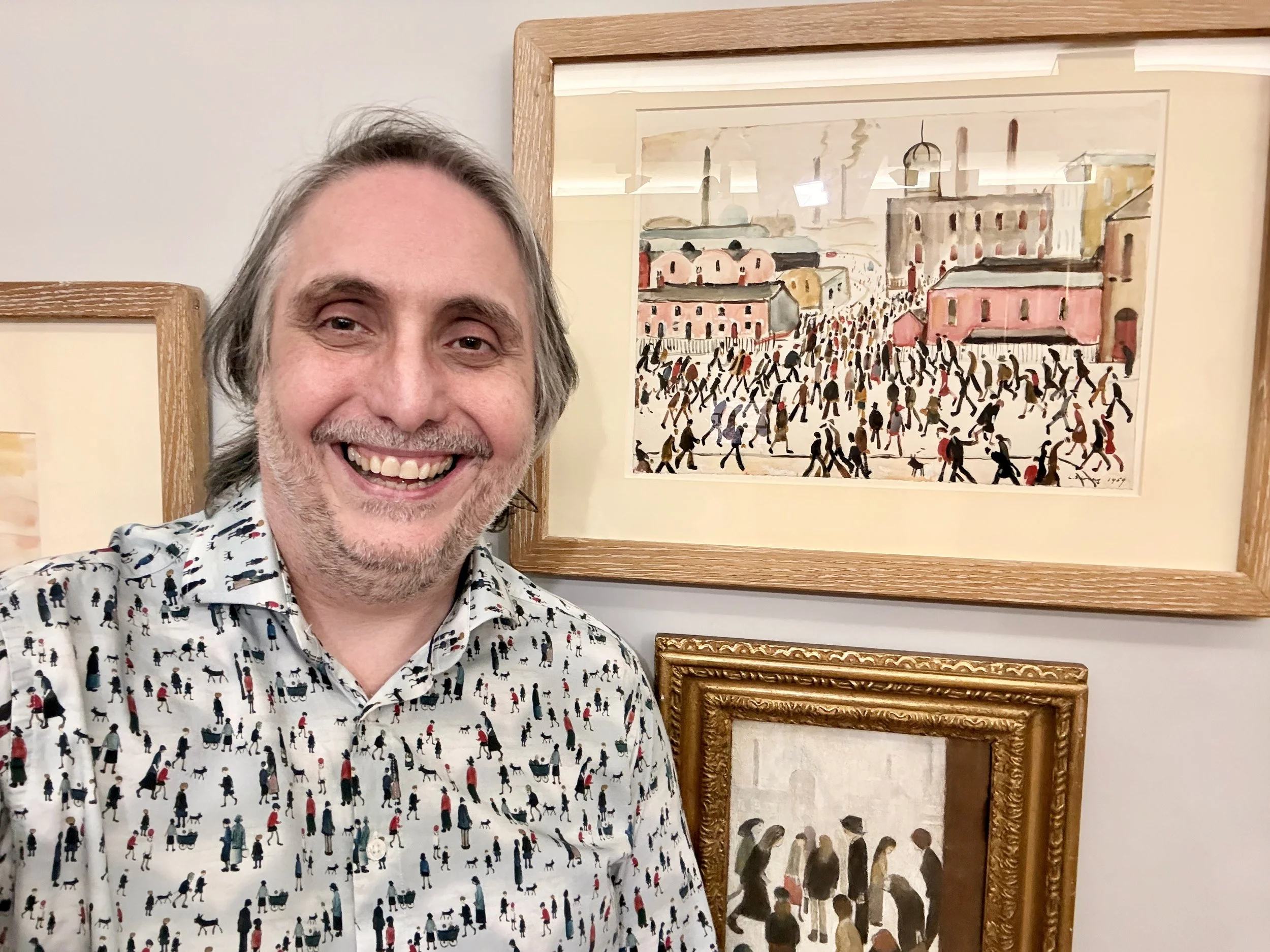 There's something quietly radical about standing in a gallery full of Lowry originals whilst wearing a shirt covered in the very same matchstick figures staring back at you from the walls. That was Thursday evening at The Andrew Law Galleries, Pier 8, Salford — and it was, frankly, brilliant.