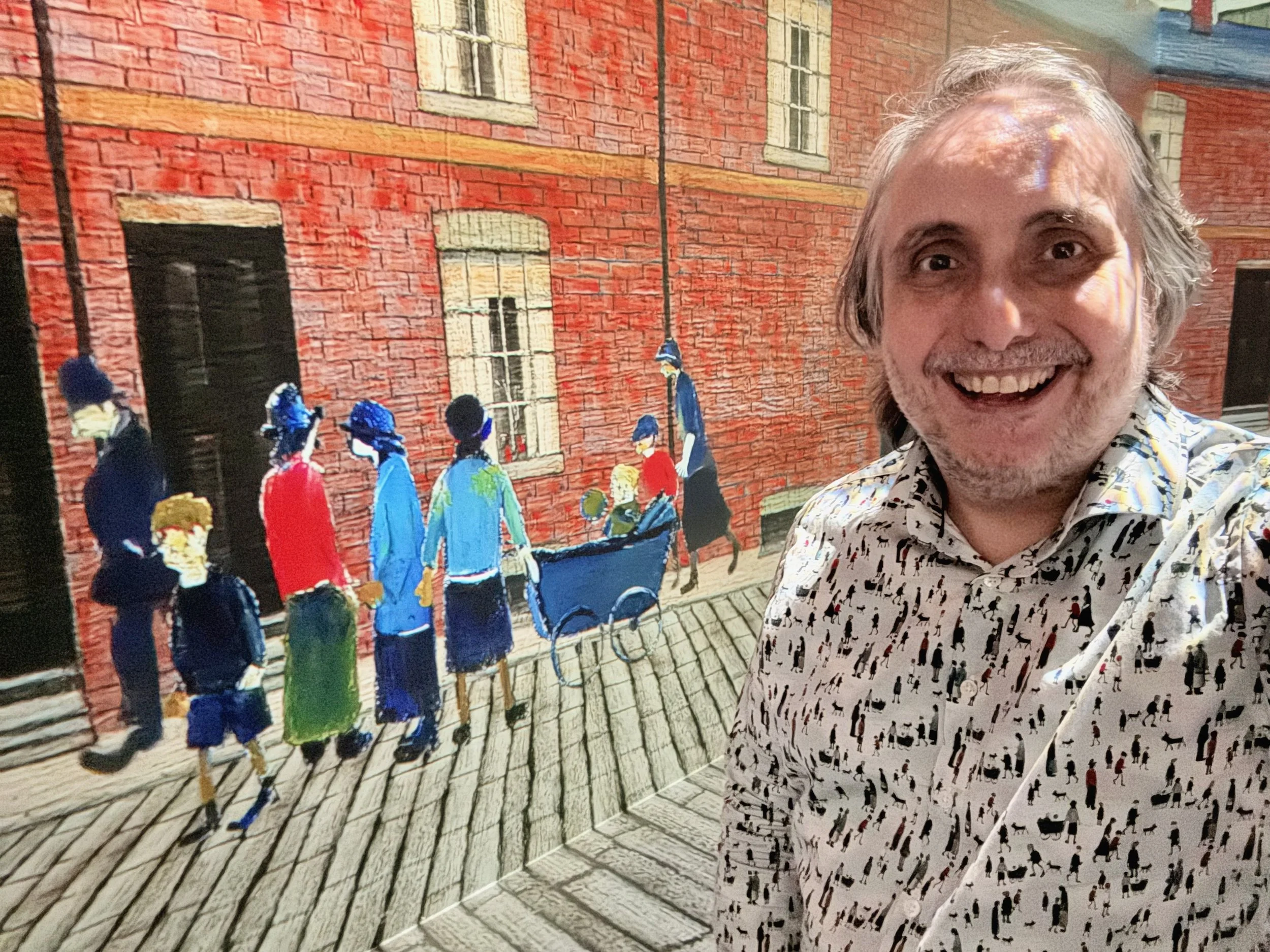 Stepping into Lowry 360 is something else entirely. Lowry's figures — those thousands of small, determined, going-somewhere people — projected at scale across every surface, moving through their industrial landscapes all around you. The effect is not spectacle for its own sake. It's communion. You are no longer observing his world through a frame. You are standing in it. The mill workers pass you. The mothers with prams brush past. The dogs trot by. The smoke rises.